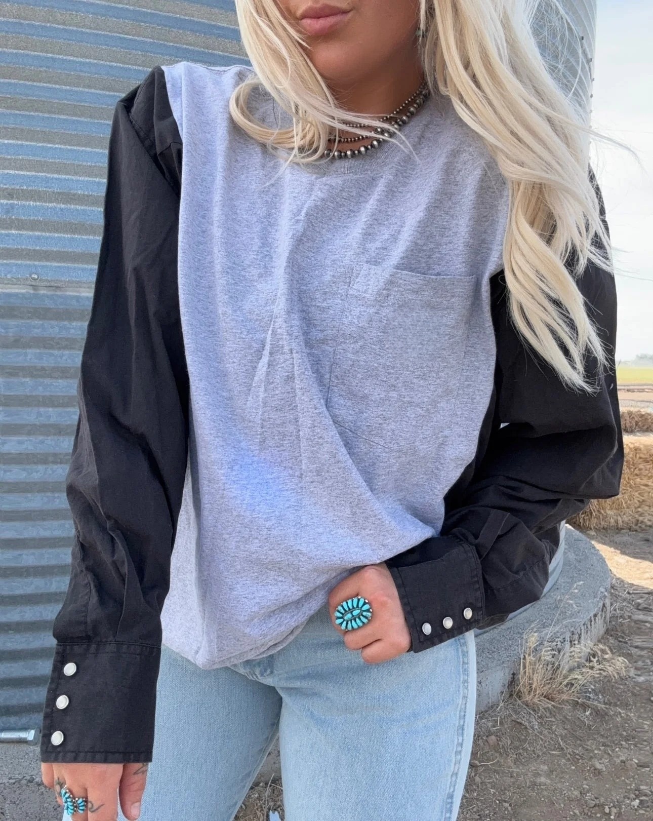 Asphalt Cowboy Patchwork Top