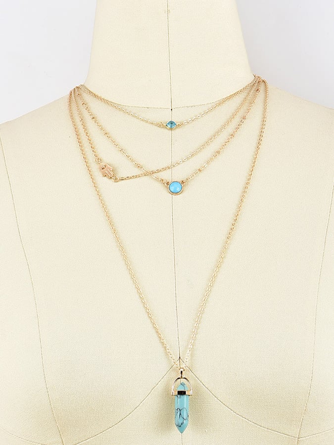 Natural Turquoise Crystal Column Pendant Necklace$5.99 USD$8.99 USD