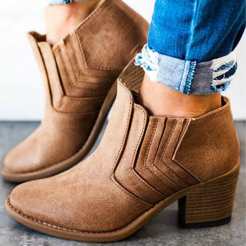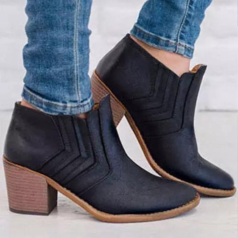 Ladies Chunky Heel Ankle Boots Slip On Round Toe Solid Brief Style Boots$41.98 USD$51.98 USD