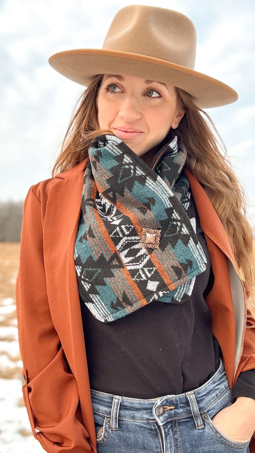 Western Cowboy Brown/Black Aztec Warm Neck Hood$26.99 USD$65.00 USD