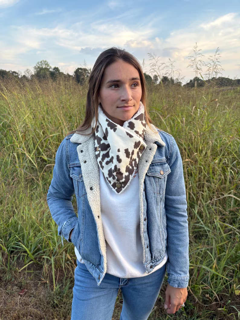 Women's Western Cow pattern Sherpa Warm Neck Hood$26.99 USD$30.00 USD