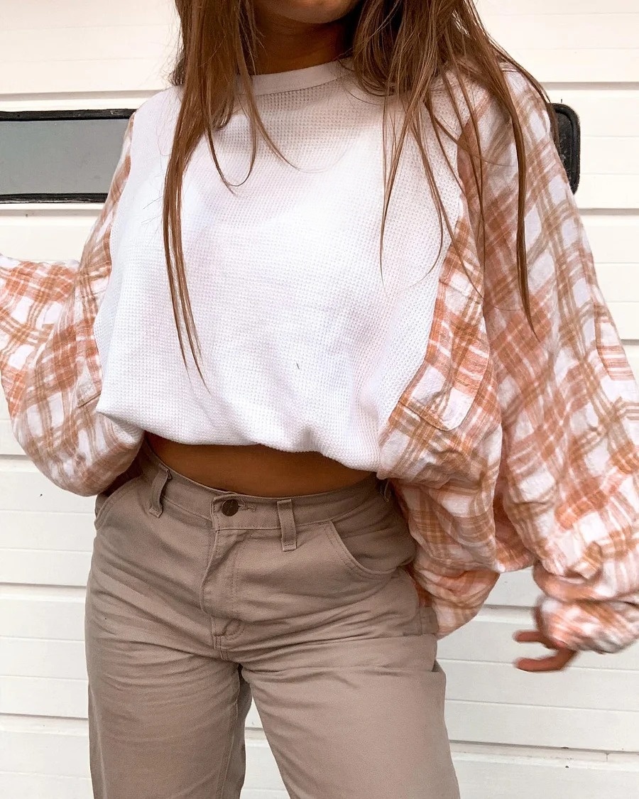 Grey White Flannel Crew f7c4$37.99 USD$49.98 USD