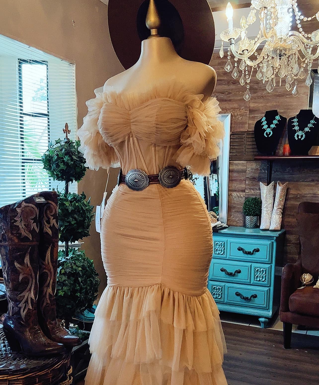 New Western Classic Tull corset Dress-khaki$68.98 USD