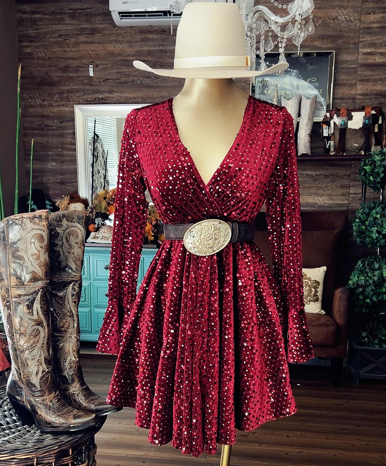 New Arrivals 🍂Western sequin Dress!-RED$39.89 USD$72.71 USD