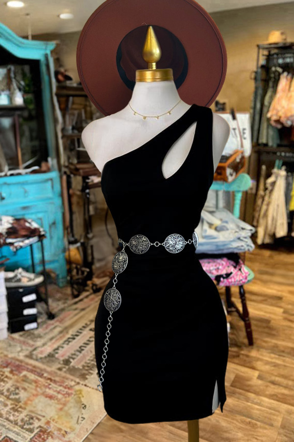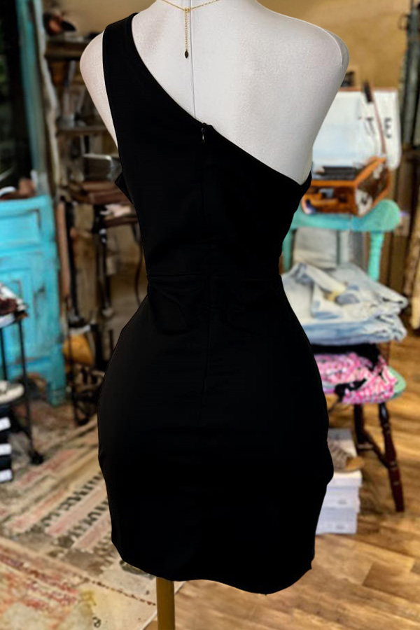 Simple One Shoulder Hollow Dress-0520$34.99 USD$63.62 USD