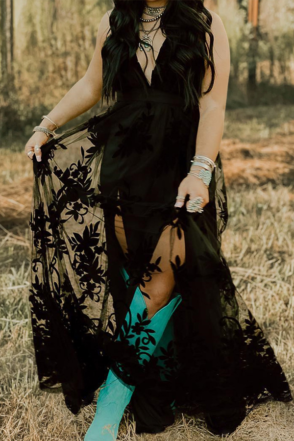 Beautiful V-Neck Floral Pattern Mesh Dress$54.99 USD$96.35 USD