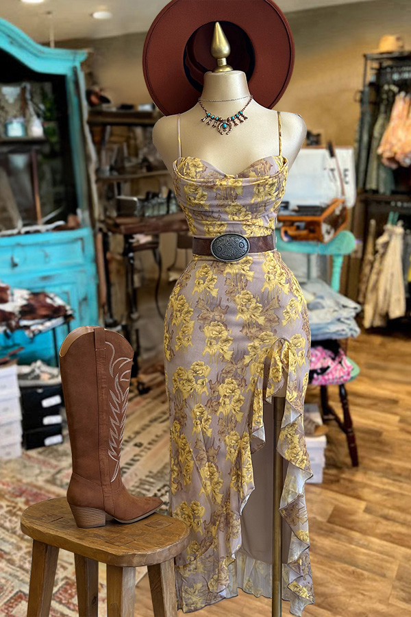 Beautiful Cowl Neck Ruffle Midi Dress$38.99 USD$70.89 USD