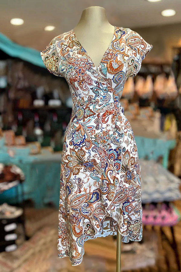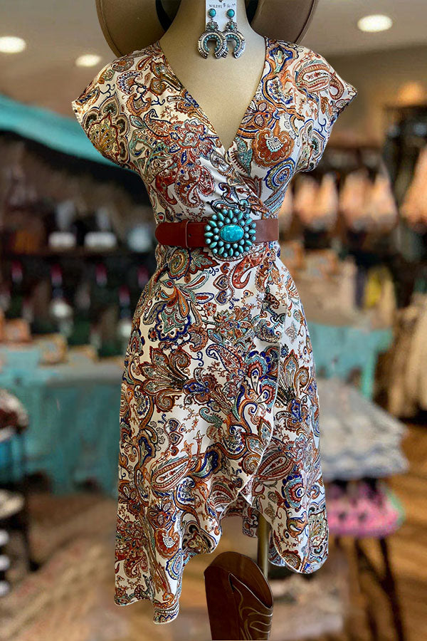Elegant Wrap Print Dress$36.99 USD