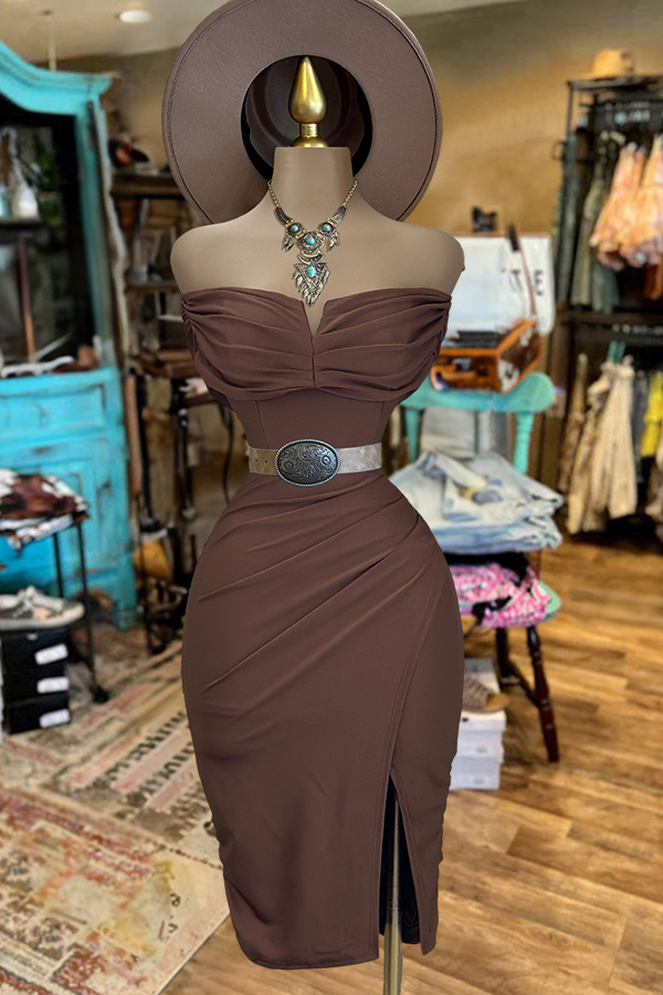 Strapless Pleated Slit Dress$36.99 USD$59.00 USD