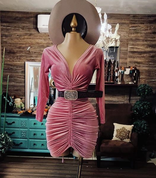 Women's Long Sleeve V Neck Ruched Mini dress$37.98 USD$68.87 USD