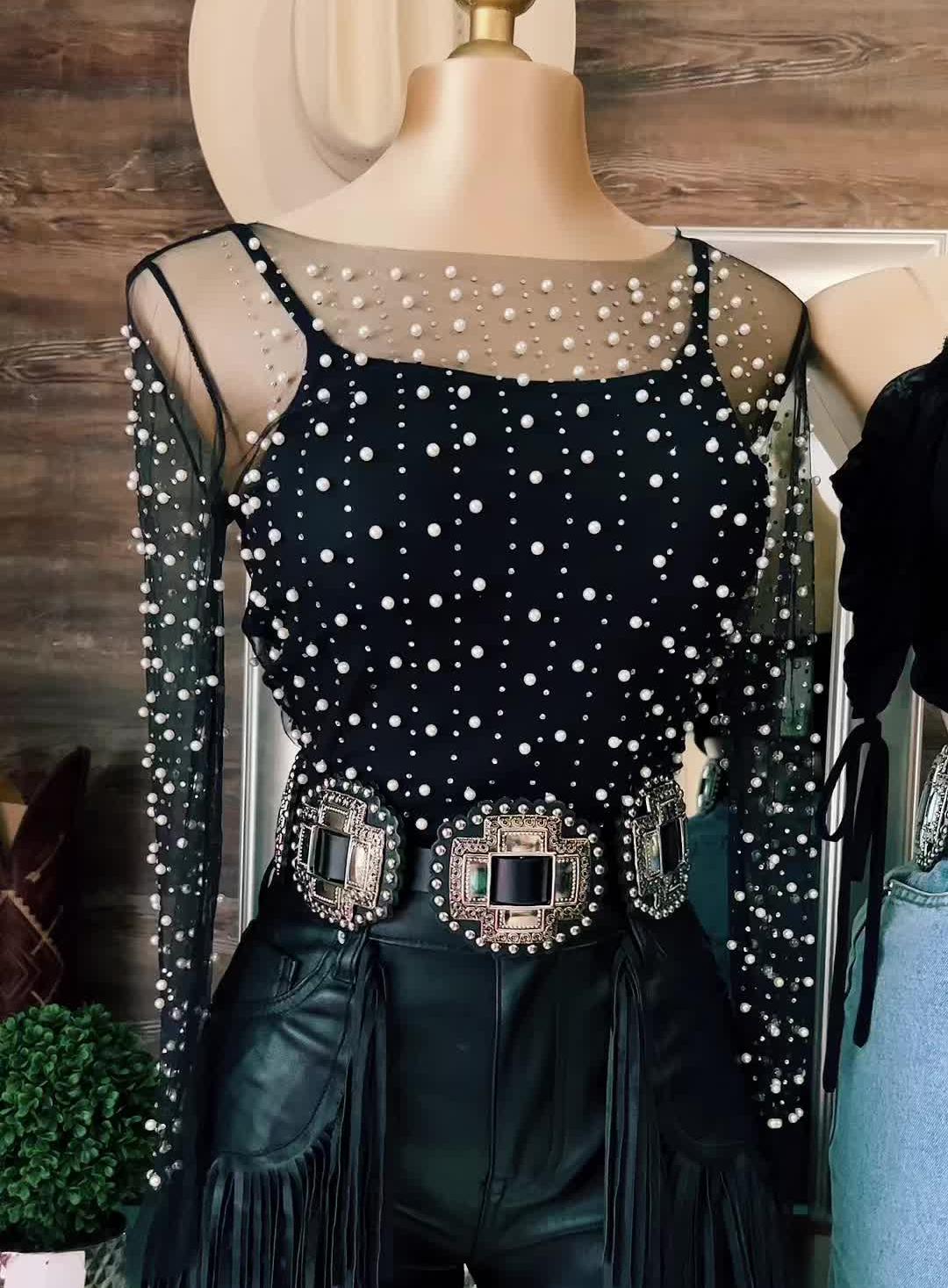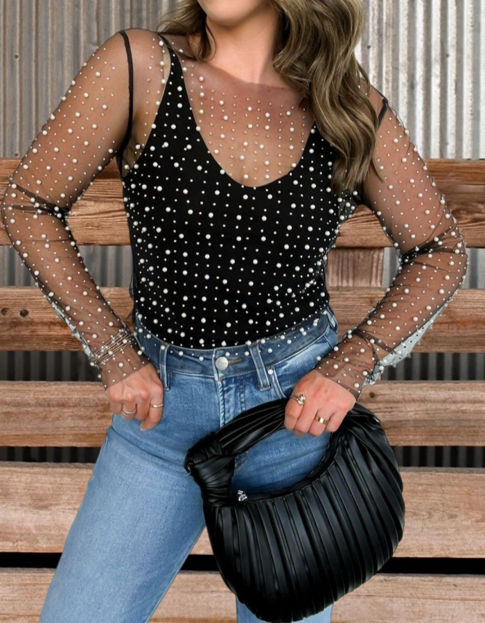 Mesh Pearl and Gem Layering Top