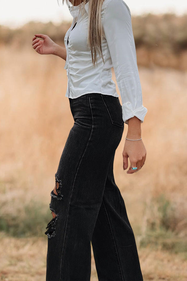 We're glad you've clicked on our new casual wear jeans as we're really into its on-trend vibes! The wide leg and high waist cut make this a great choice for any stylish girl.