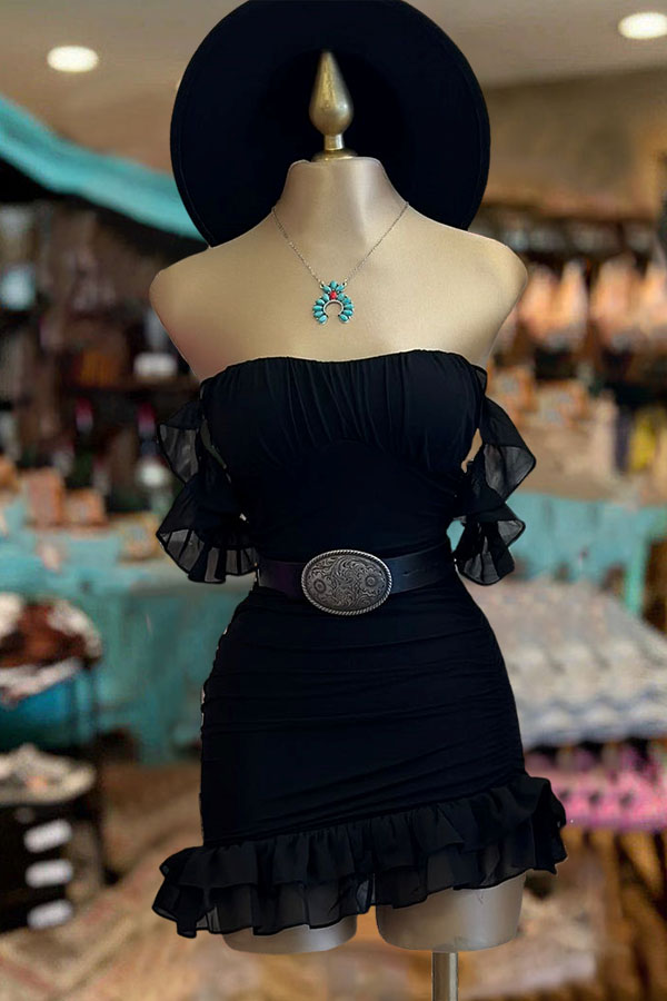 Stay on trend this season in our new pretty, bandeau dress. We especially love the solid color fabric and think this piece will be a new favorite in your closet!