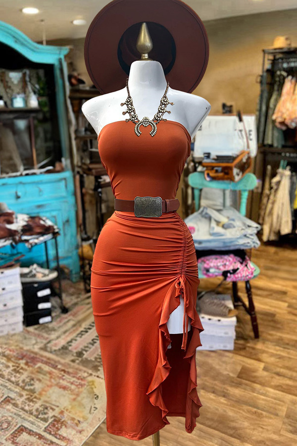 We're glad you've clicked on our new casual wear dress as we're really into its casual vibes! The strapless and sleeveless cut make this a great choice for any stylish girl.