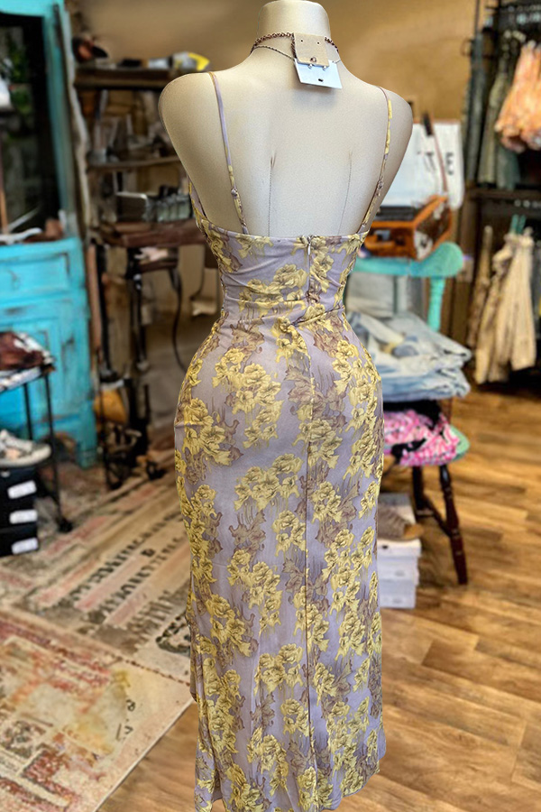 Stay on trend this season in our new pretty, Sling dress. We especially love the abstract print fabric and think this piece will be a new favorite in your closet!