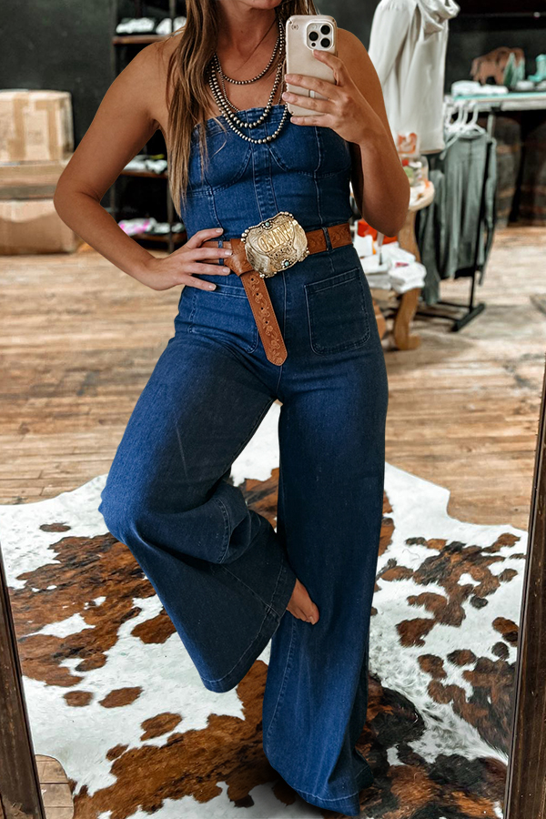 Stay on trend this season in our new retro, bandeau jumpsuit. We especially love the bleached fabric and think this piece will be a new favorite in your closet!