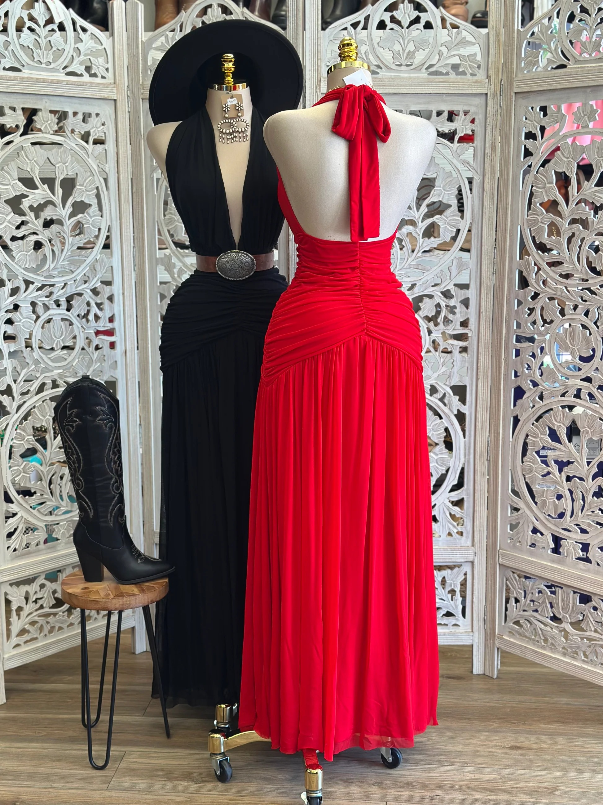 ✨ Floor-length design with a flowing hemline for a glamorous look.