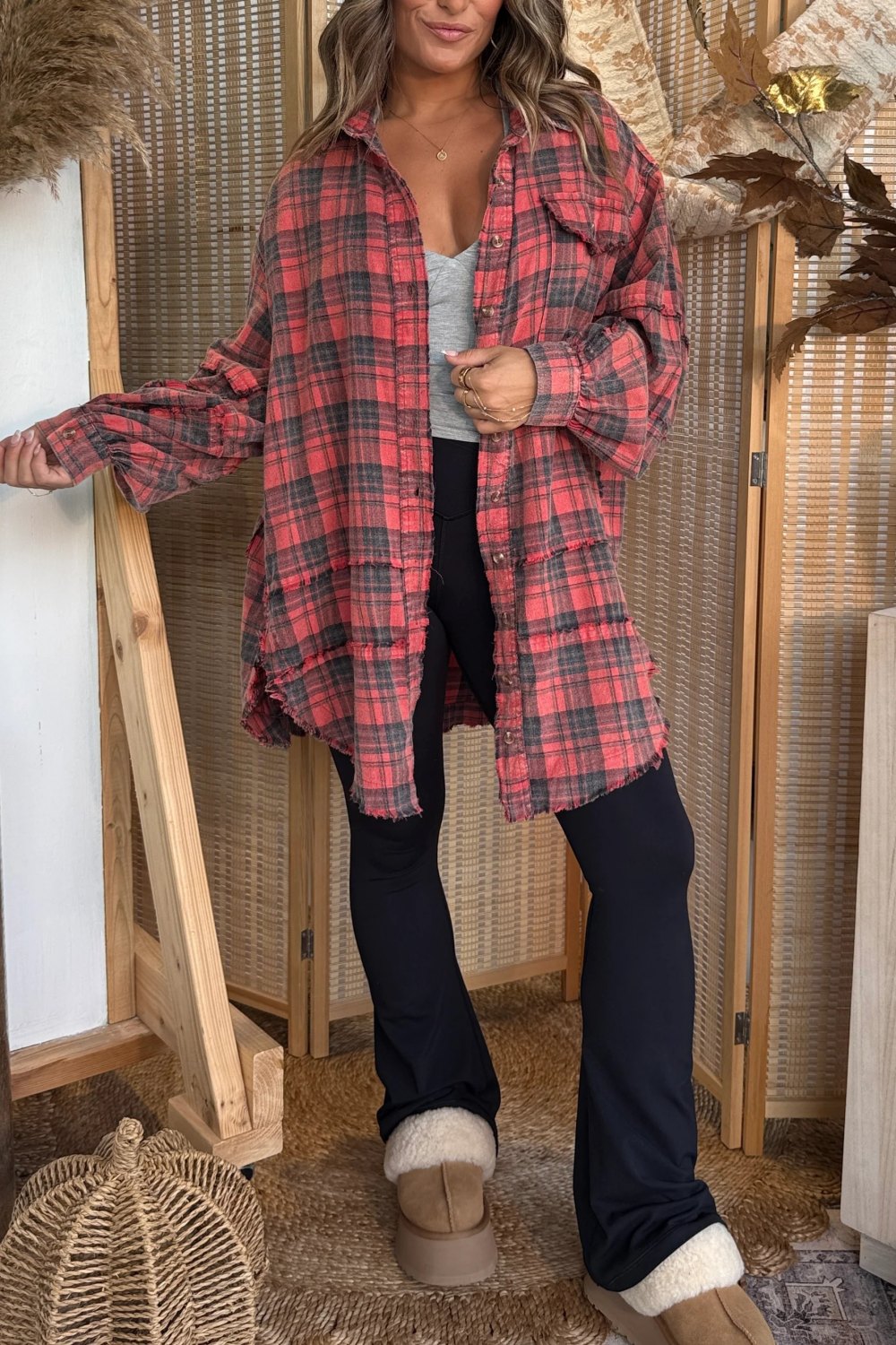 Wrap yourself in cozy charm with the Warmth of You Button Down – Red. This soft, warm button-down top features a rich red hue that brings a bold yet timeless touch to your fall and winter wardrobe. Designed with a relaxed fit, smooth fabric, and classic button-down front, it’s perfect for layering or wearing on its own. Comfortable, stylish, and effortlessly versatile — your go-to piece for chilly days.
