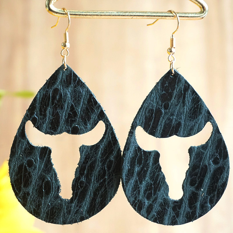 | Product Name | Western style buffalo head water drop geometric embossing Earrings |