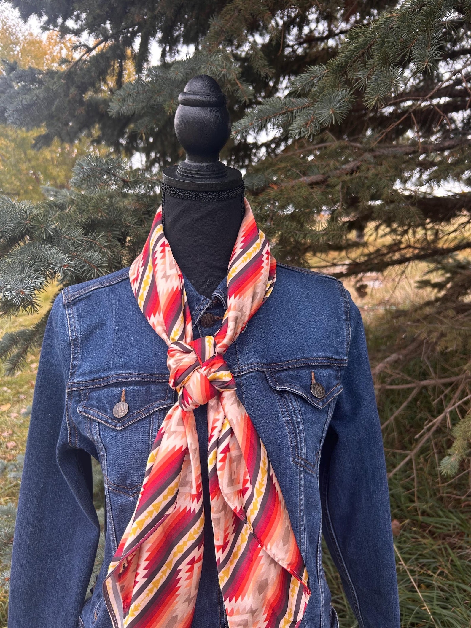 • Classic Western wild rag design with cowboy-inspired prints
